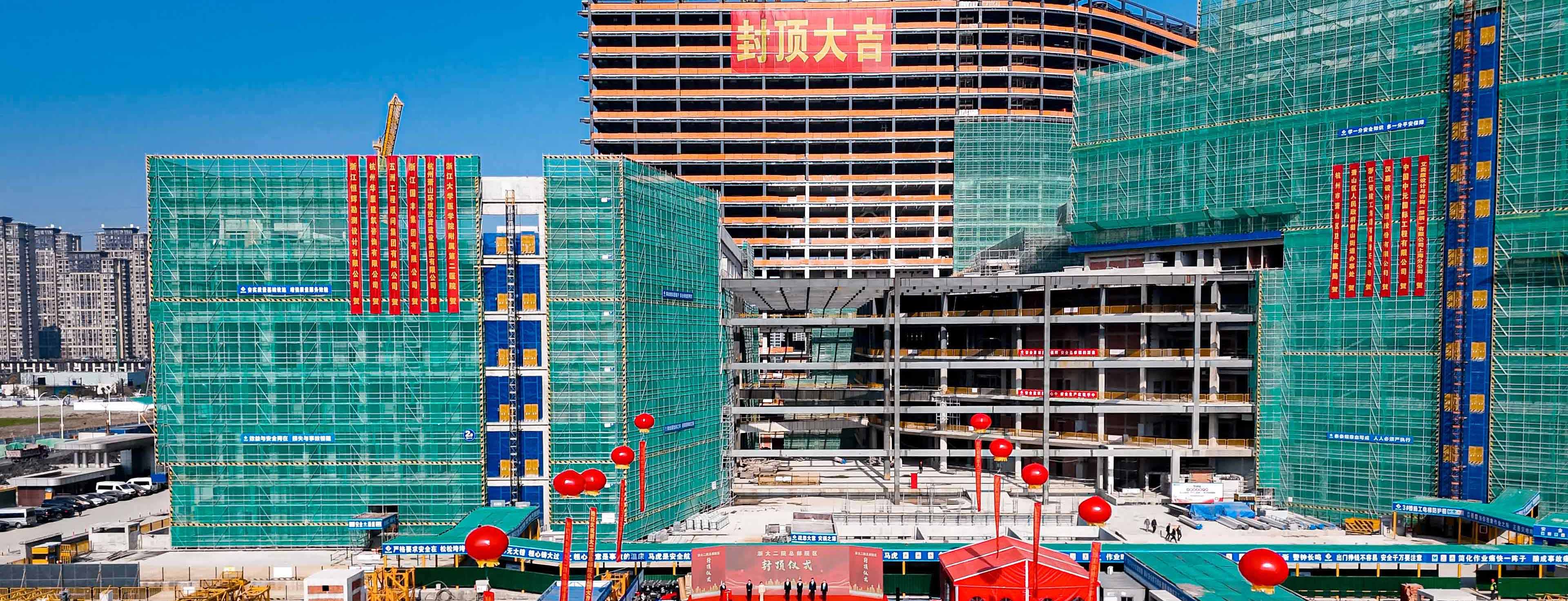 我集團(tuán)承建的浙大二院總部院區(qū)項目喜結(jié)金頂